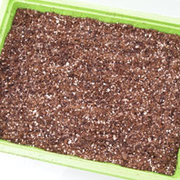 | @有機の土で、まずはタネまき | A発芽したら、セルトレイに 植え替えします |